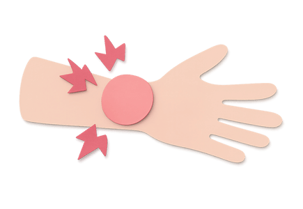 Ein Pad in der Nähe des Schmerzpunkts auf dem Unterarm (nicht auf dem Knochen) platzieren.