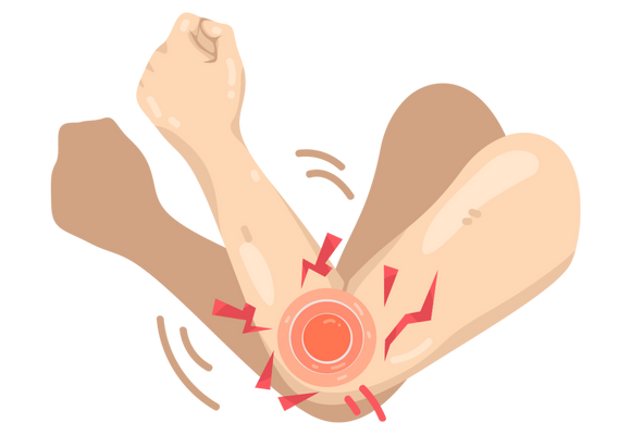 Pads rund um das Knie platzieren, nicht direkt auf der Kniescheibe.